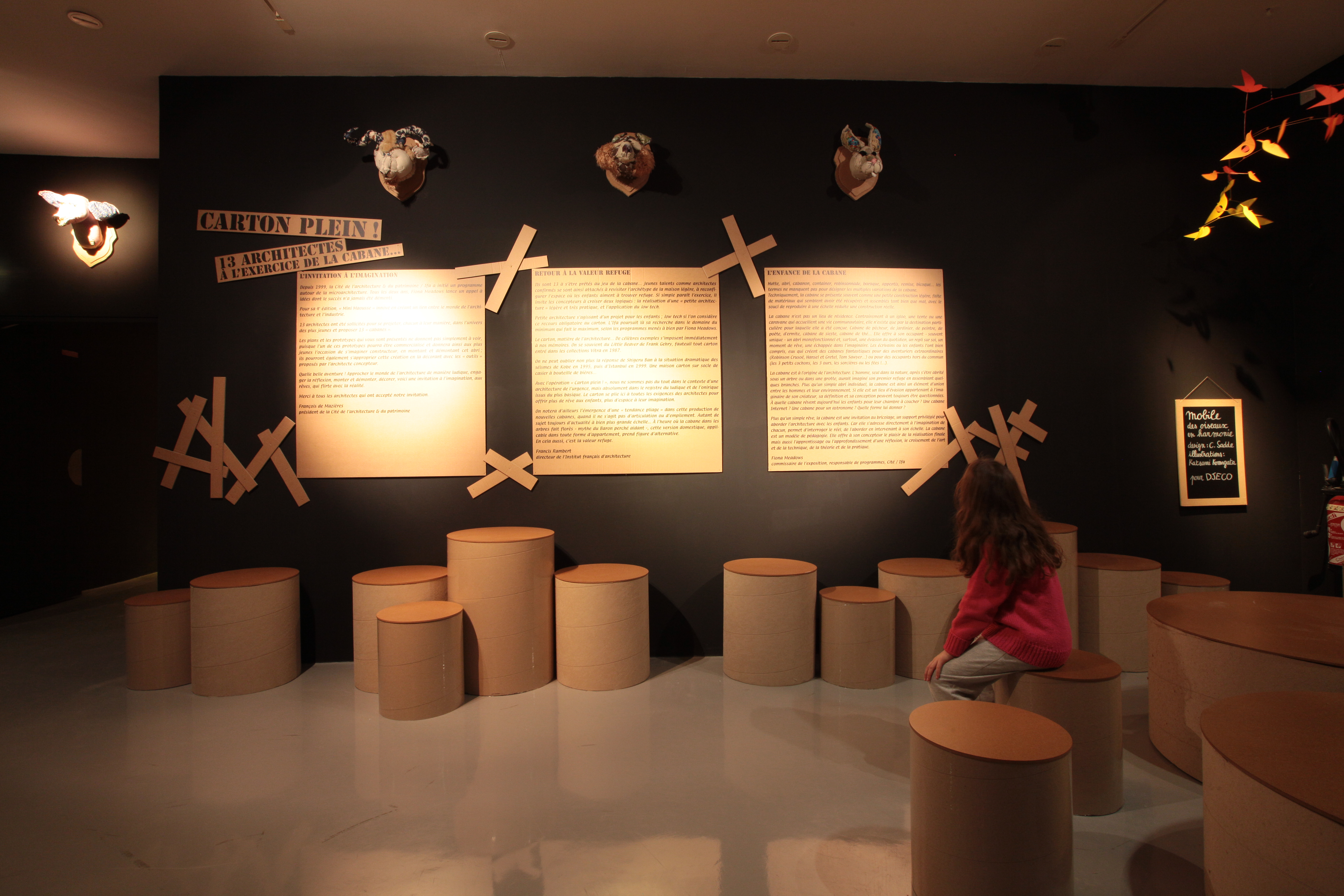 13 architectes de France et de Tunisie: Dominique Perrault, Encore Heureux, Hamonic et Masson, Matthieu Poitevin, Michel et Miquel, Patrick Bouchain, Rudy Ricciotti, Stéphane Maupin, Collectif 3rs, Ophélie Bertout et Marcus Kistner, Memia Taktak, Karim Ben Amor, Samir et Monia Makhlouf imaginent des cabanes en carton pour chambres d’ enfants dans le cadre de l'opération "Mini Maousse 4 / construire XXS pour les + petits". Et d'autres créateurs qui aiment aussi plier, déplier, froisser, couper, coller... jouer avec le carton !
