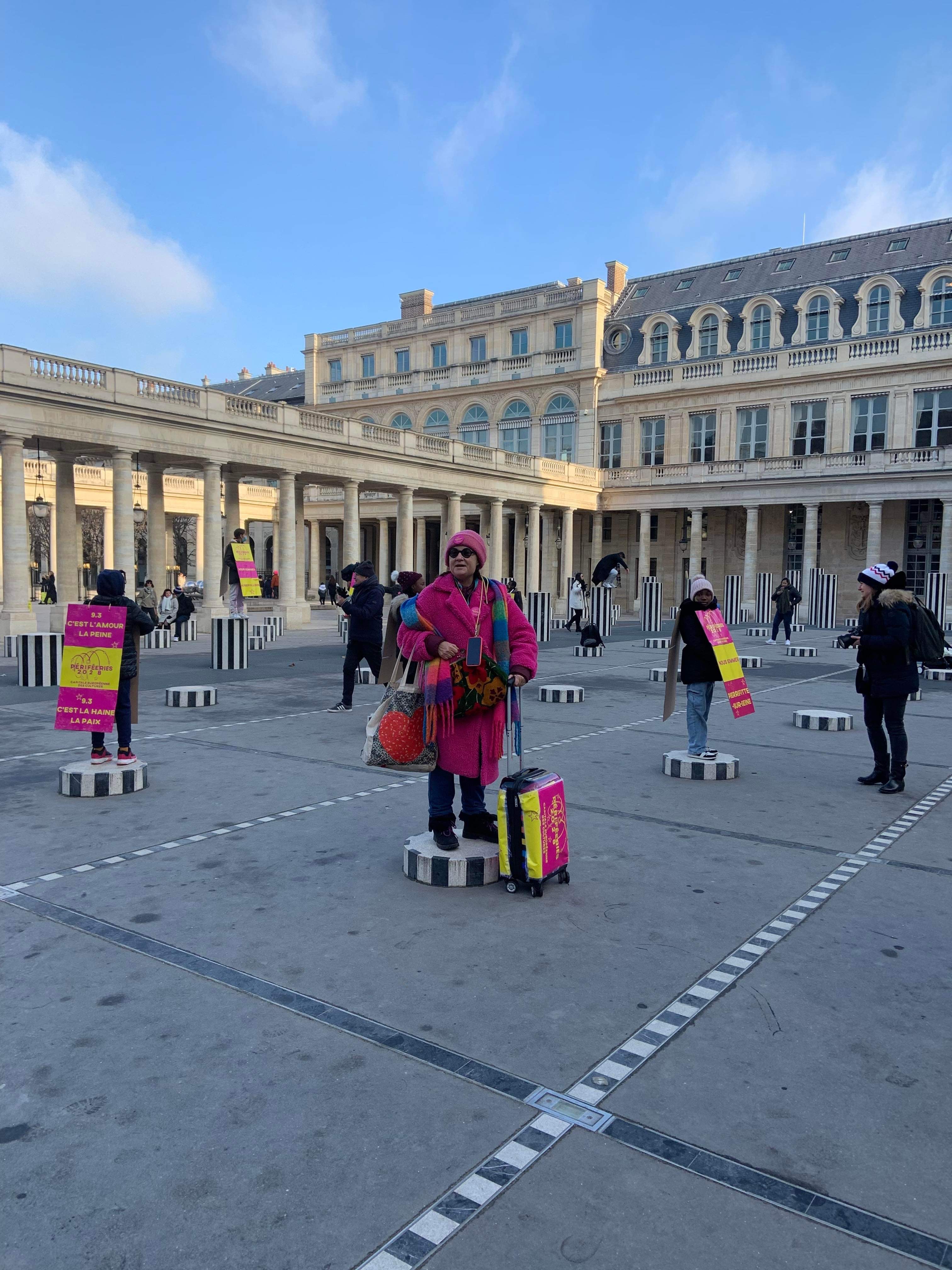 Le rendez-vous pour cette remise n'est pas n'importe où. Elle se fait sur la place publique des colonnes de Buren au Palais Royale à Paris, où les lignes noires et blanches cohabitent harmonieusement ensemble.