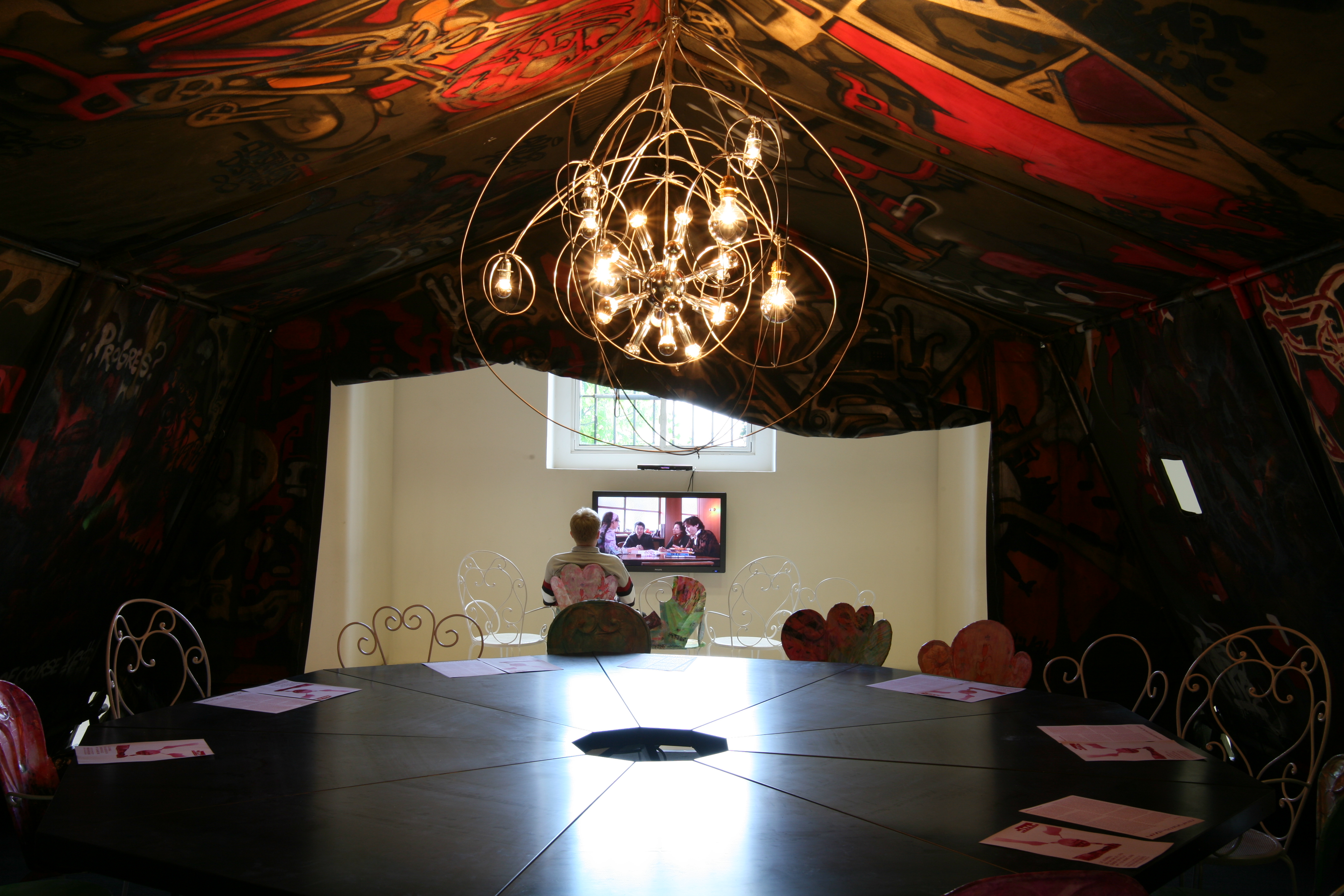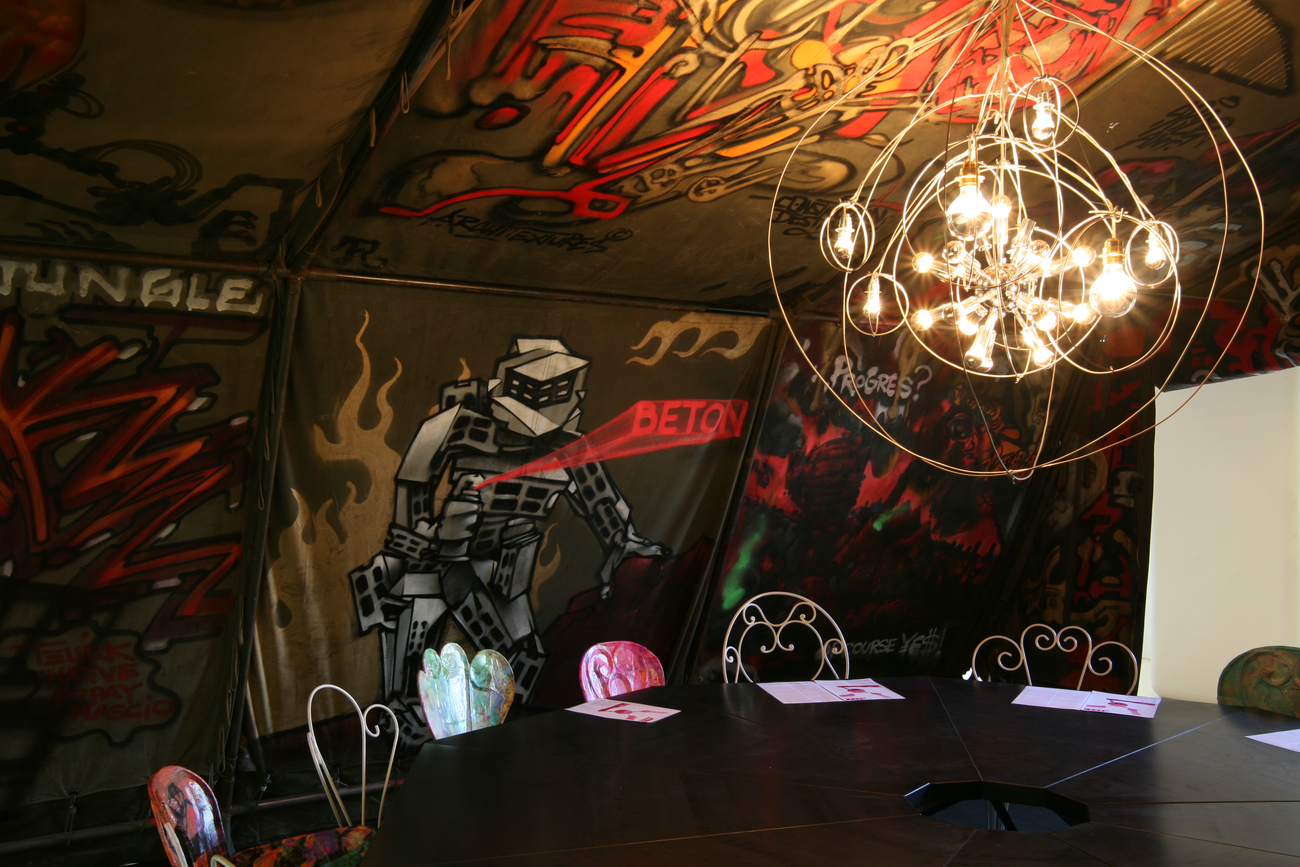 Le salon du palais au sein de Palais de Chaillot s’est muté en un dispositif mobile. Il s’agit de proposer au public un espace d’immersion dans un environnement unique et inédite conçu par un architecte invité. La démarche n’est pas celle d’une exposition de type « monographique » même si le Son met en valeur le travail et l ‘univers d’un architecte. Les architectes invités ici sont surtout actifs en France, reconnus pour leur démarche expérimentale, leurs approches novatrices. Pour être véritablement comprise, l ‘architecture doit être expérimentée et habitée; l’échelle réelle est certainement la meilleure manière de saisir les intentions de l’architecte.